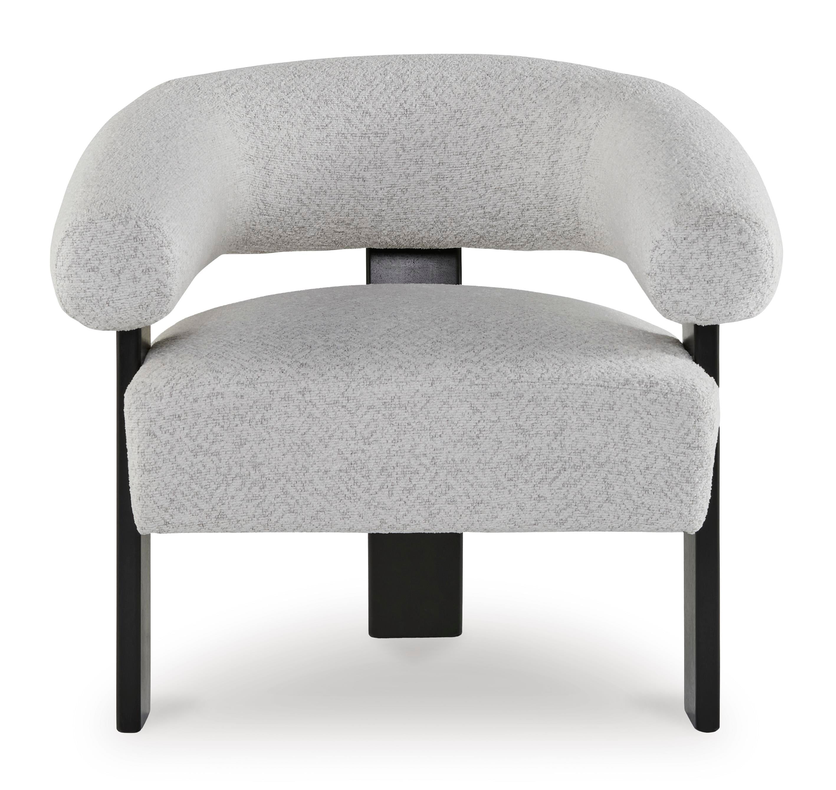 Heykelsi formuyla dikkat çeken bu berjer, modern yaşam alanlarına güçlü bir tasarım ifadesi kazandırır. Sanatsal silueti özgün bir stil anlayışını yansıtırken, yumuşak dokulu kumaşı konforlu ve keyifli bir oturum deneyimi sunar. Siyah-beyaz kontrastı sayesinde mevcut dekorasyonlarla kolayca uyum sağlayarak mekâna dinamik bir dokunuş katar.