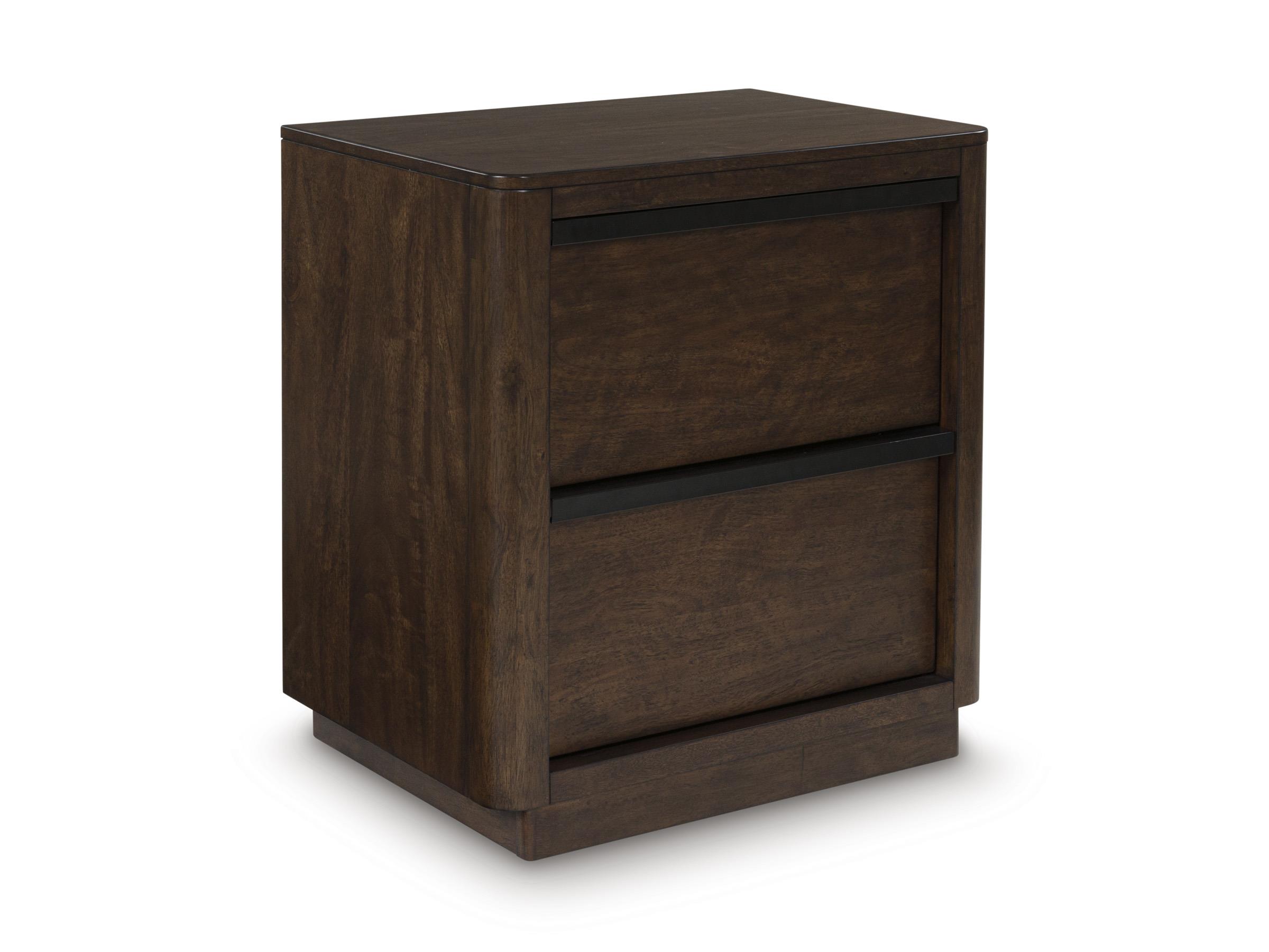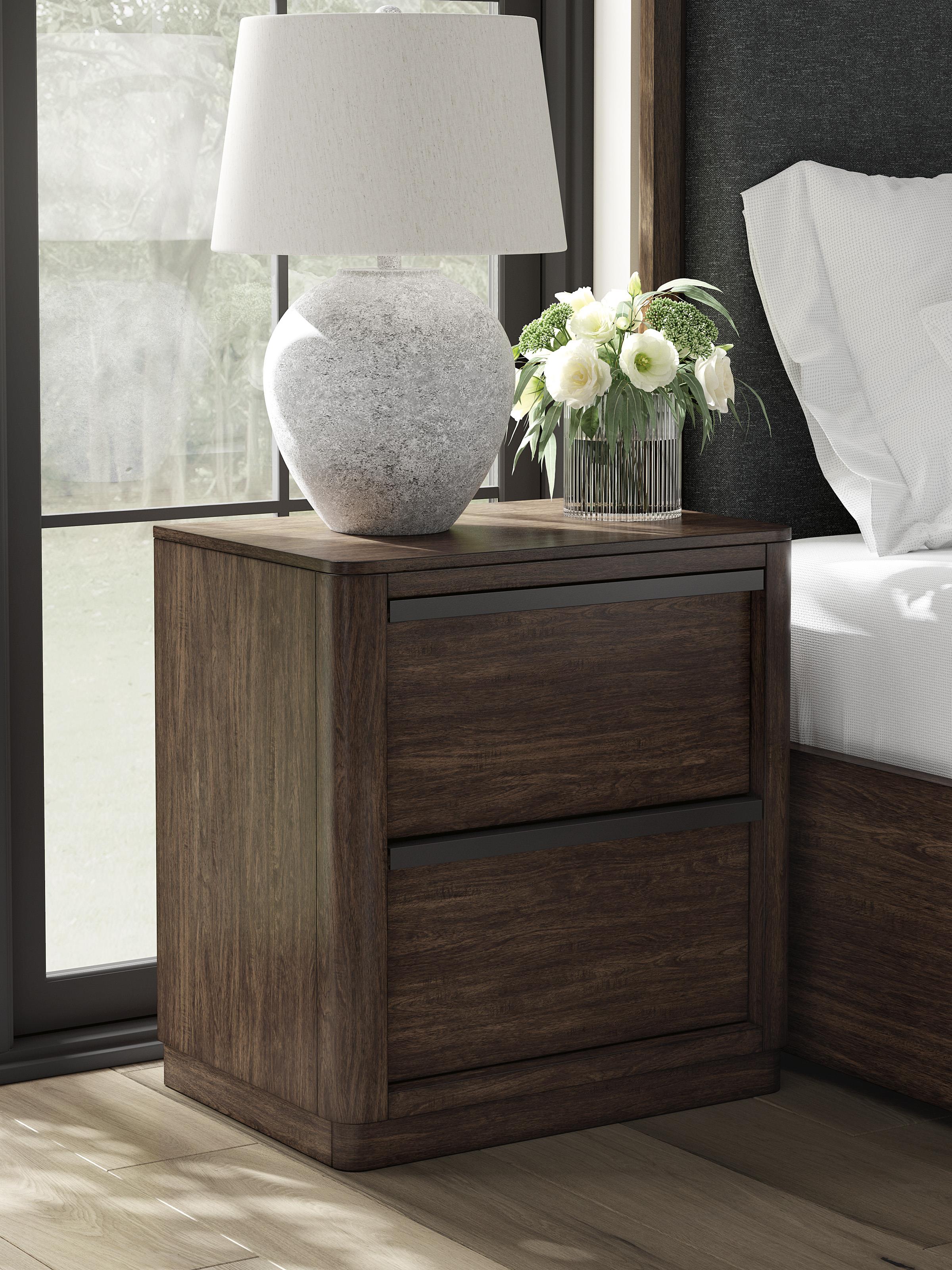 Güncel ve rahat bir yorumla ele alınan çağdaş tasarımı modern bir duruşla buluşturan bu komodin, zengin koyu kahverengi yüzeyiyle yatak odalarına sıcak ve davetkâr bir atmosfer kazandırır. Mat siyah metal kulplar tasarıma sofistike bir kontrast eklerken, sade ama güçlü formu mekânda şık bir tamamlayıcı olarak öne çıkar.