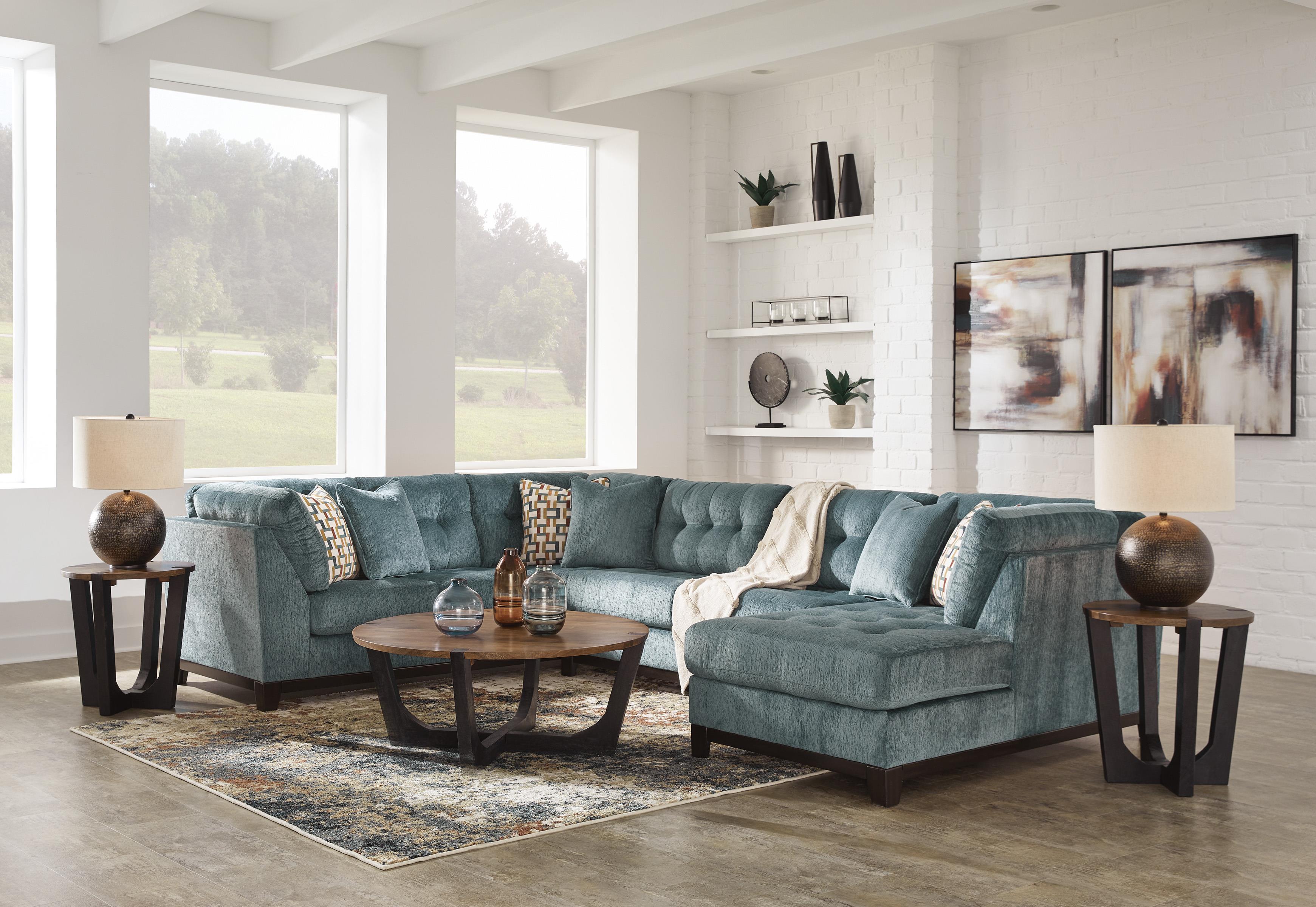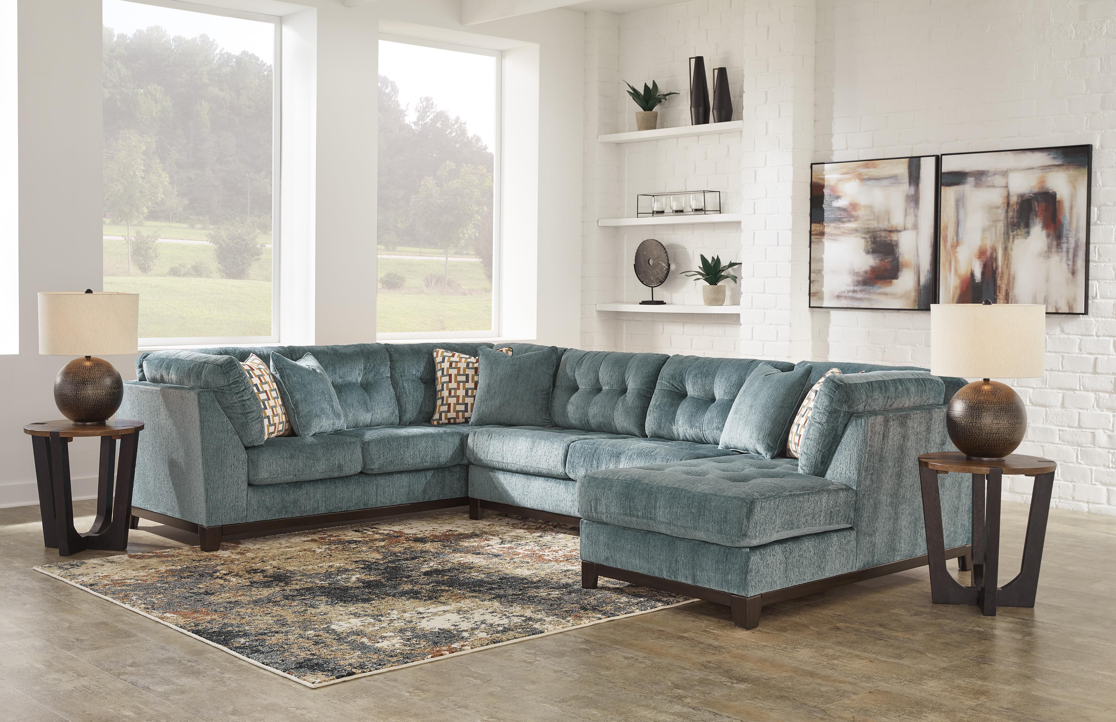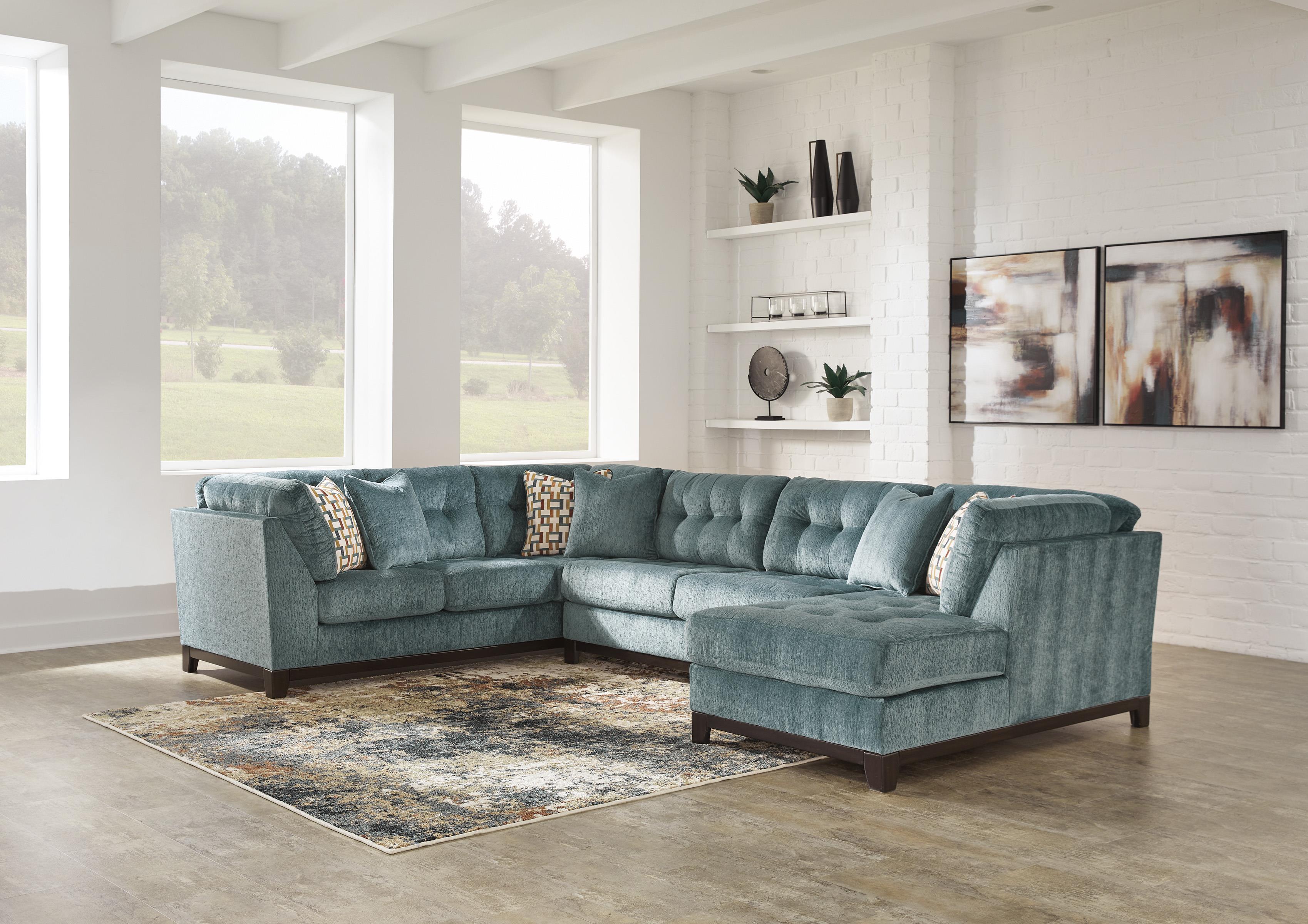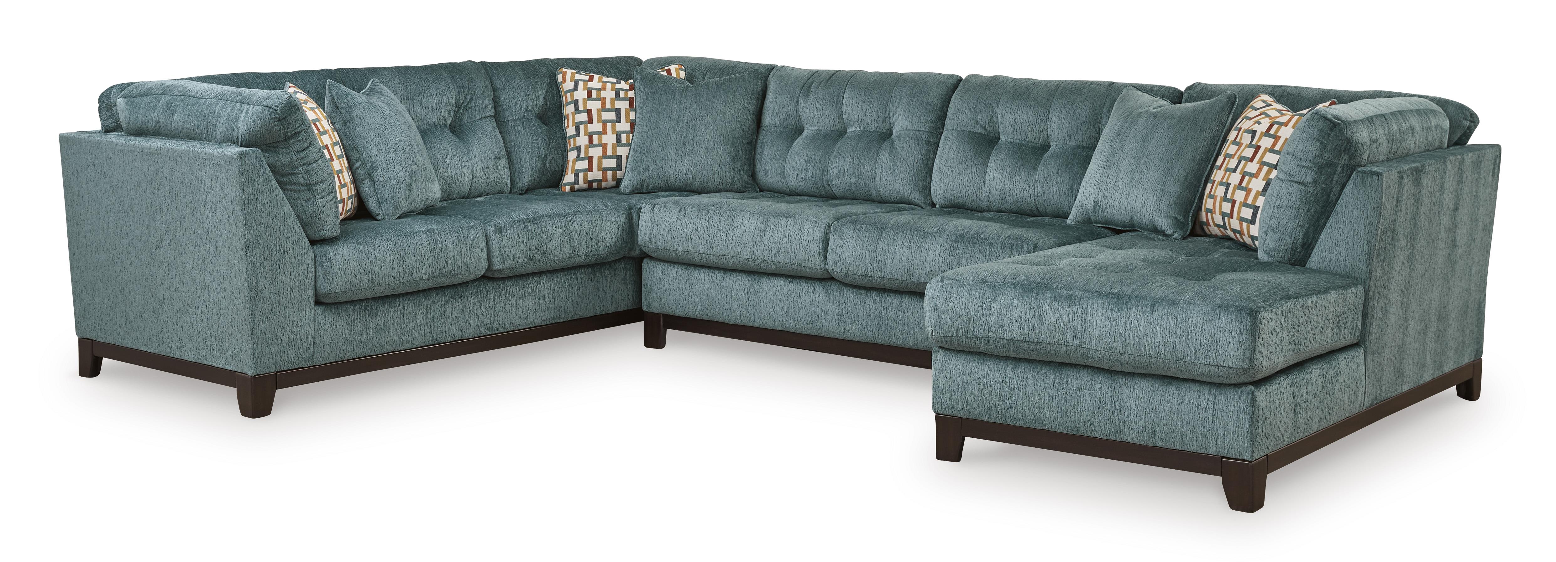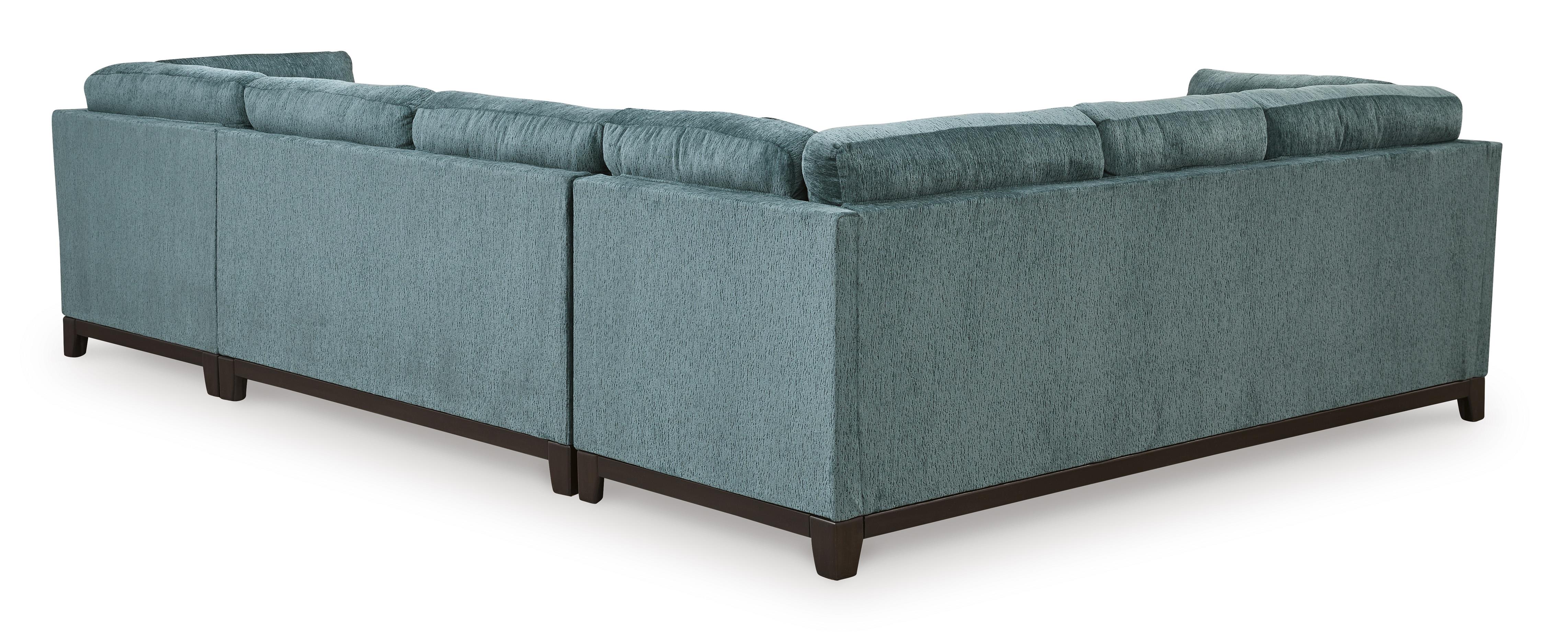 3 modüler parça içerir: sağ kol destekli köşe şezlong, kolsuz iki kişilik kanepe ve kanepe "Sol kol" ve "sağ kol", parçaya baktığınızda kolun konumunu belirtir Köşe bloklu çerçeve Geçici oturma yeri ve bağlı sırt minderleri Poli elyafla sarılmış yüksek kaliteli köpük minderler Vurgu yastıkları dahildir Yumuşak poli dolgulu yastıklar Polyester döşeme Sahte ahşap kaplamalı açık ray ve ayaklar Platform taban sistemi, 20.000 test döngüsünden sonra daha eşit destek sağlayarak yay sistemine göre sarkmaya 3 kat daha iyi direnç gösterir Pürüzsüz platform taban, kıvrımlı yaylı tabanlarda zamanla oluşabilecek çökme veya sarkmalar olmadan sıkı ve kırışıksız bir görünüm sağlar