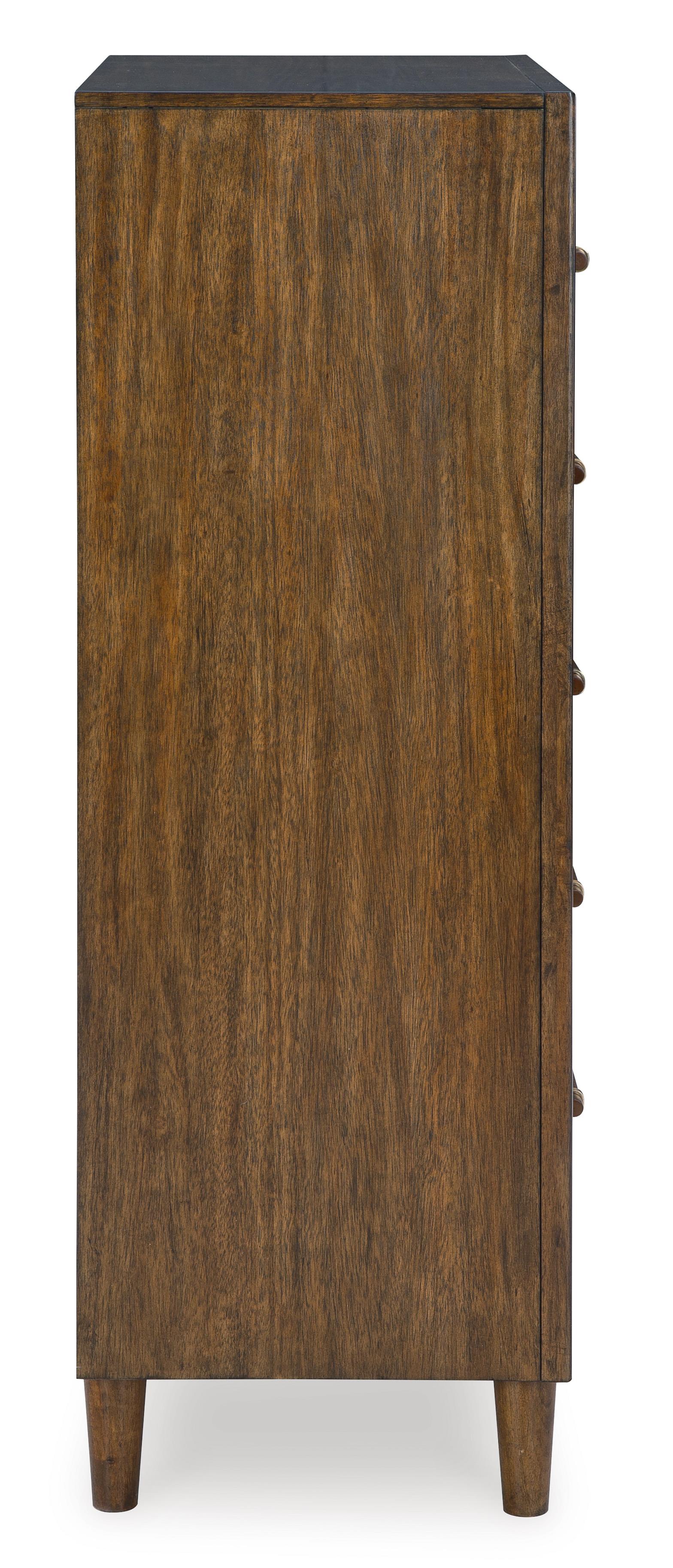 Bu çekmeceli dolap, çağdaş veya orta yüzyıl iç mekanları için mükemmeldir. Ahşap tonlarındaki kaplaması çok yönlü ve zamansızdır. Zarif çerçeveler ve uzun ahşap kulplarla tasarlanan çekmeceler, genel estetiği artırır. İster tüm yatak odanızı yenilemek, ister birkaç önemli parça eklemek isteyin, bu ideal bir seçimdir. Masif ahşap, mango ağacı kaplama ve MDF yüzeylerle üretilmiştir. Orta kahverengi ahşap tonlarında kaplama Tamamen bitmiş iç yüzeye sahip 5 çekmece, kırlangıç kuyruğu yapısı ve ağır hizmet tipi bilyalı yan raylar Yuvarlak konik ayaklar
