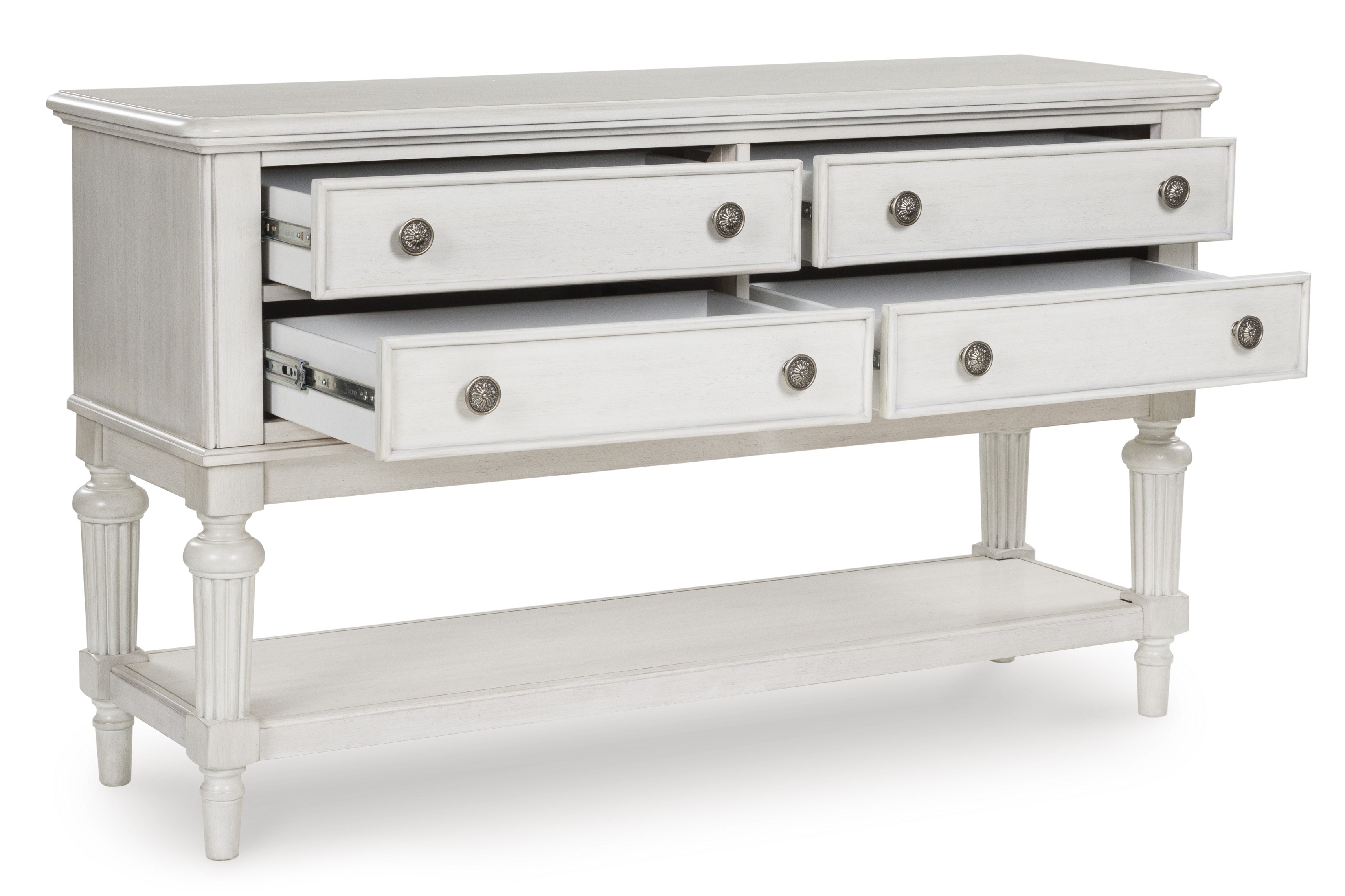 • 4 adet geniş çekmece; keçe kaplı iç yüzey, kırlangıç geçme yapı ve ağır hizmet tipi bilyalı ray sistemi