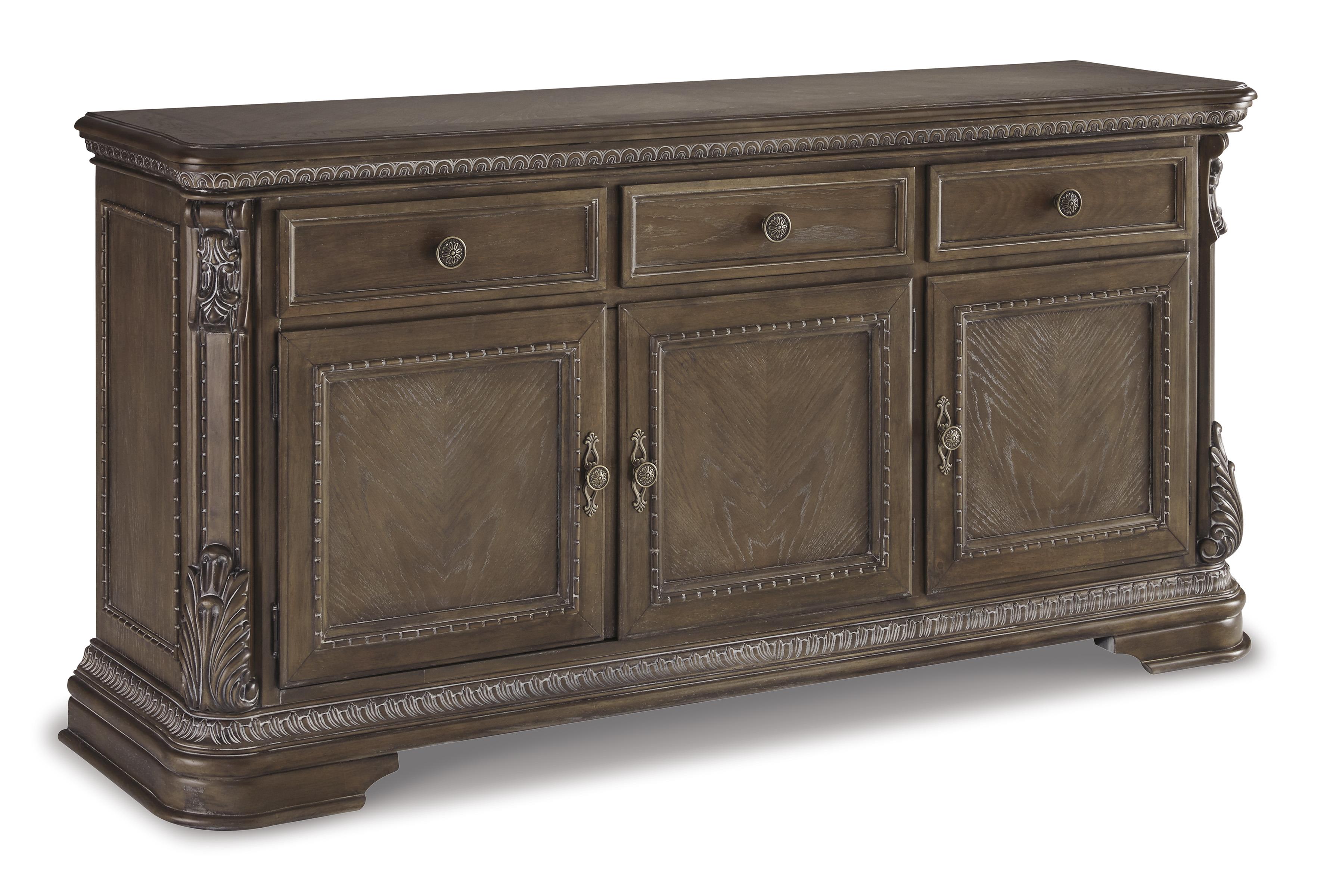 Charmond yemek odası büfesinin geleneksel tarzın eşsiz lüks yorumu her şeyi anlatıyor. Kaydırılmış akantus vurgularıyla zarif bir şekilde detaylandırılmış çok renkli bir cila ile işlenmiştir ve bir aşk emeğidir. Üç kapaklı saklama alanı ve geniş yüzeyi eğlence ihtiyaçlarınızı son derece iyi bir şekilde karşılar.