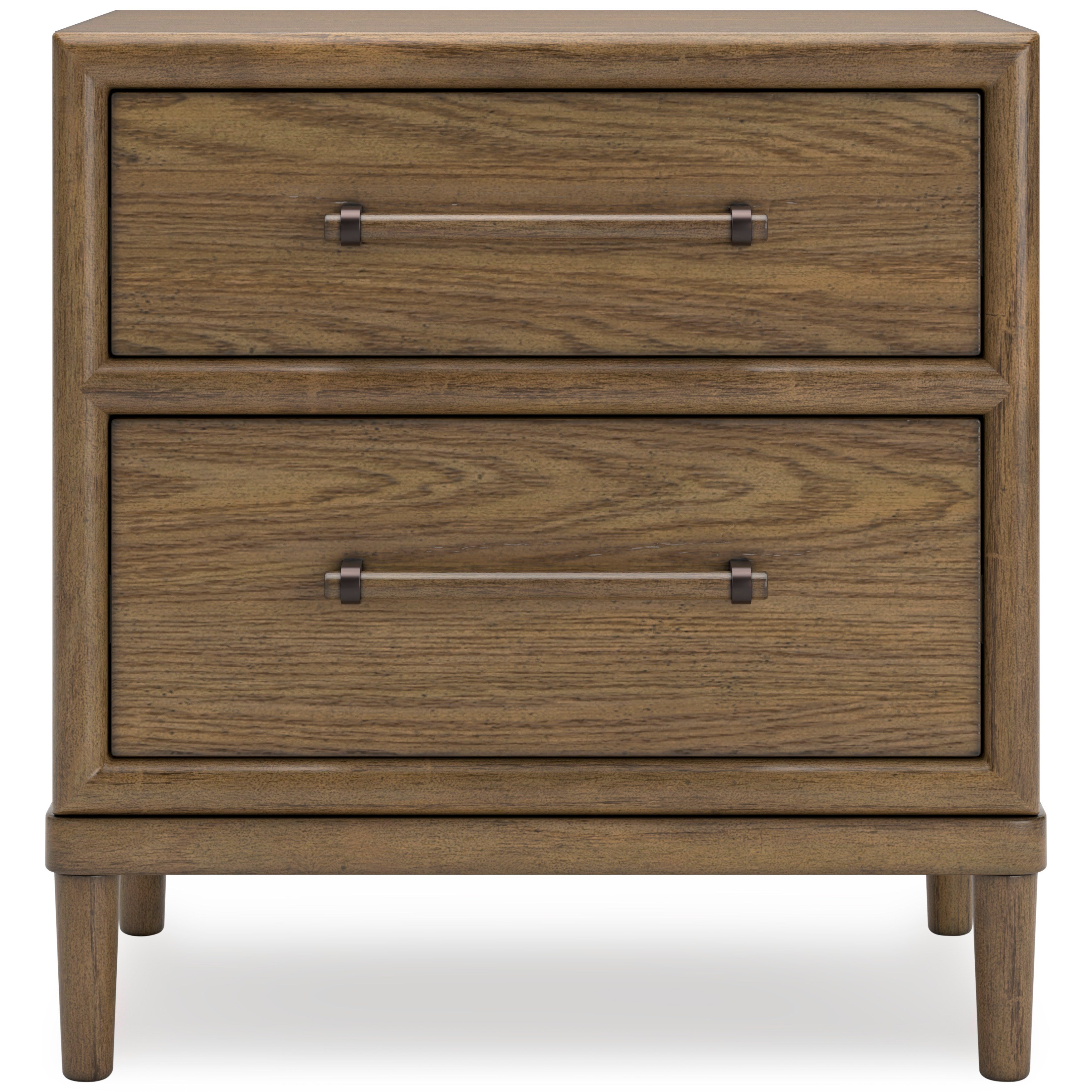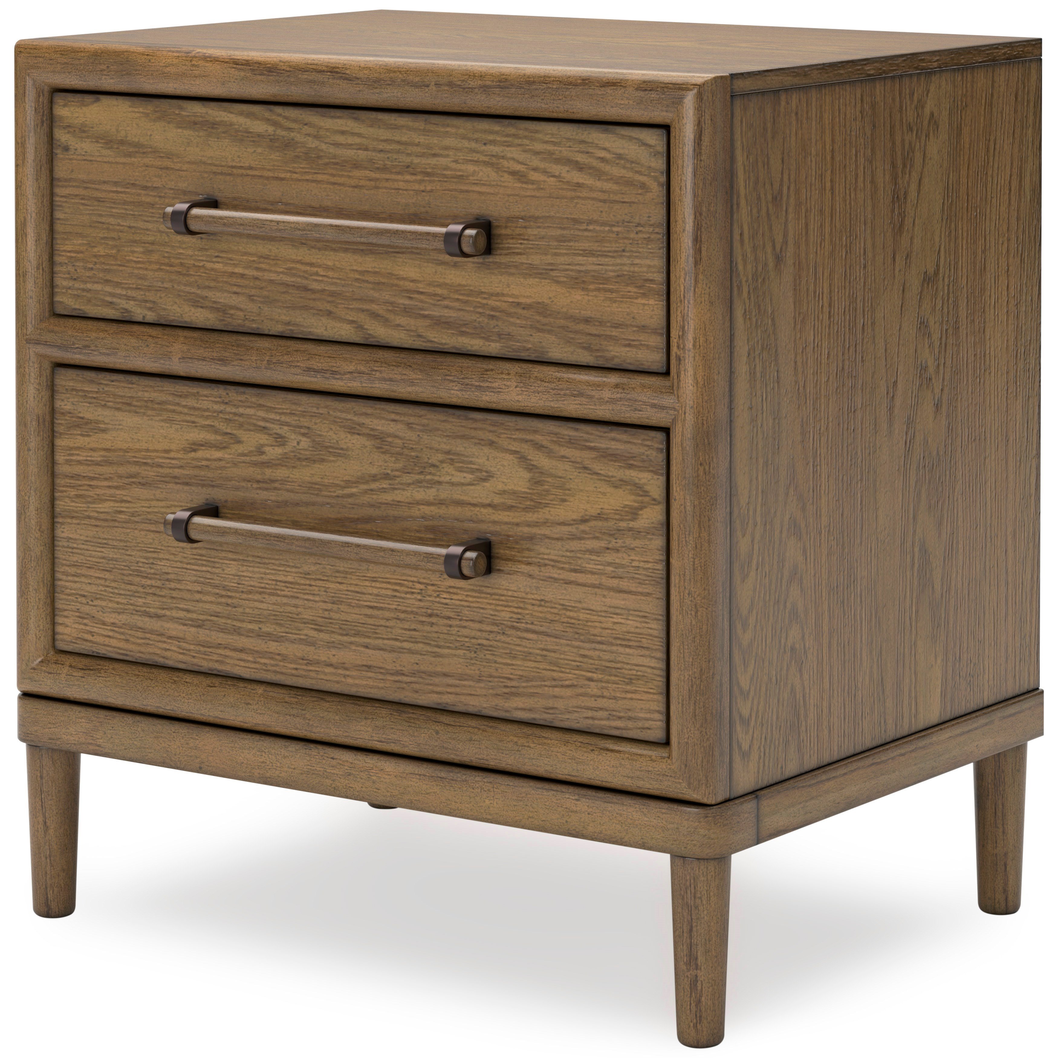 • Kauçuk ağacı, meşe kaplama ve MDF alt malzeme ile üretilmiştir • Kahverengi meşe tonlu yüzeye sahiptir • Ahşap ve metal çekmece kulplarıyla tamamlanmıştır • Kırlangıç geçme yapısına sahip, tamamı bitmiş iç yüzeyli ve bilyalı yan ray sistemli 2 çekmece bulunur • Üst çekmece keçe kaplıdır • Çift USB şarj girişine sahip 110V güç ünitesi ile donatılmıştır • Güç kablosu dahildir • UL listelidir • Kurulum gerektirir • Tahmini kurulum süresi: 15 dakika.