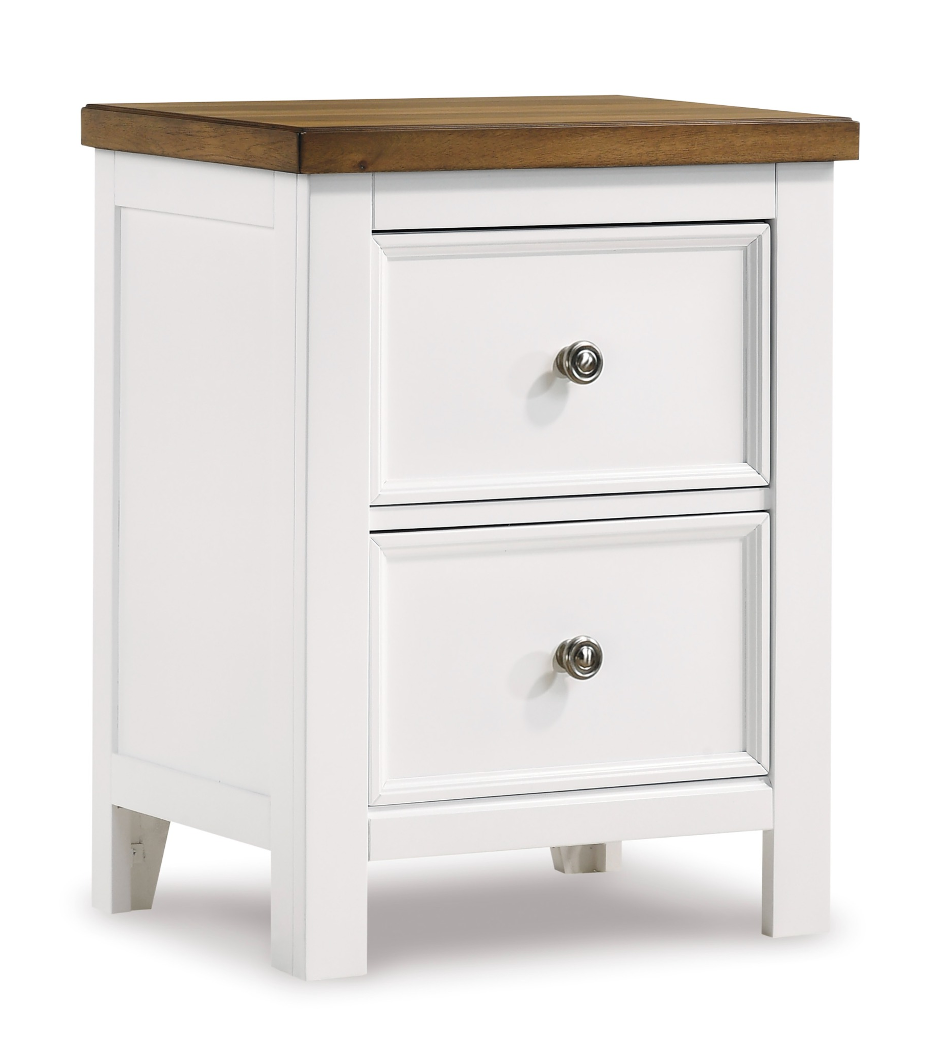 • Ahşap, akasya kaplama ve mühendislik ürünü ahşap malzemelerle üretilmiştir • İki renkli yüzeye sahiptir • Saten nikel tonlu kulplarla tamamlanmıştır • Kırlangıç geçme yapısına ve metal orta ray sistemine sahip, rahat açılıp kapanan 2 çekmece bulunur • Çekmece ön yüzlerinde dekoratif çıta detayları yer alır.
